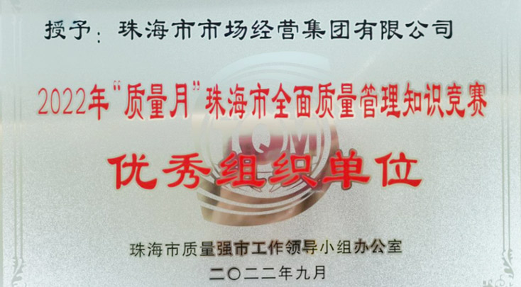 近期,农控集团下属市场集团参加了2022年“质量月”珠海市全面质量管理知识竞赛决赛活动。在本次竞赛中,市场集团高度重视,精心组织,全员参与,最终以团体优异的表现荣获该项竞赛的珠海市“优秀组织单位”、香洲区“最佳组织单位”荣誉。