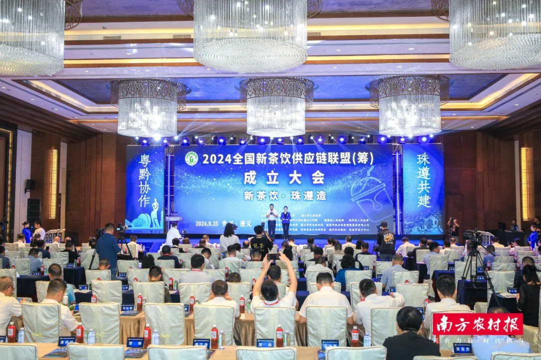 拓展茶饮新赛道,深挖消费新潜力,打造协作新标杆。9月25日,2024全国新茶饮供应链联盟(筹)成立大会在遵义市湄潭县举行。会上,珠遵新茶饮研究院暨战略咨询专家委员会、全国新茶饮供应链联盟(筹)揭牌,标志着珠遵两地共同打造的新茶饮供应链产业新生态迈出关键步伐,助力全国新茶饮供应链提质升级和新茶饮产业高质量发展。中国工程院院士、湖南师范大学校长、湖南农业大学学术委员会主任刘仲华,贵州省人大常委会原副主任、贵州省茶文化研究会会长傅传耀,贵州省农业农村厅二级巡视员杨绍武,珠海市副市长黄振球,遵义市副市长吴起,湖南农业大学副校长谢方平,遵义市湄潭县委书记、县人民政府县长游海燕,365WM SPORTS集团党委书记、董事长李鸿斌出席活动。