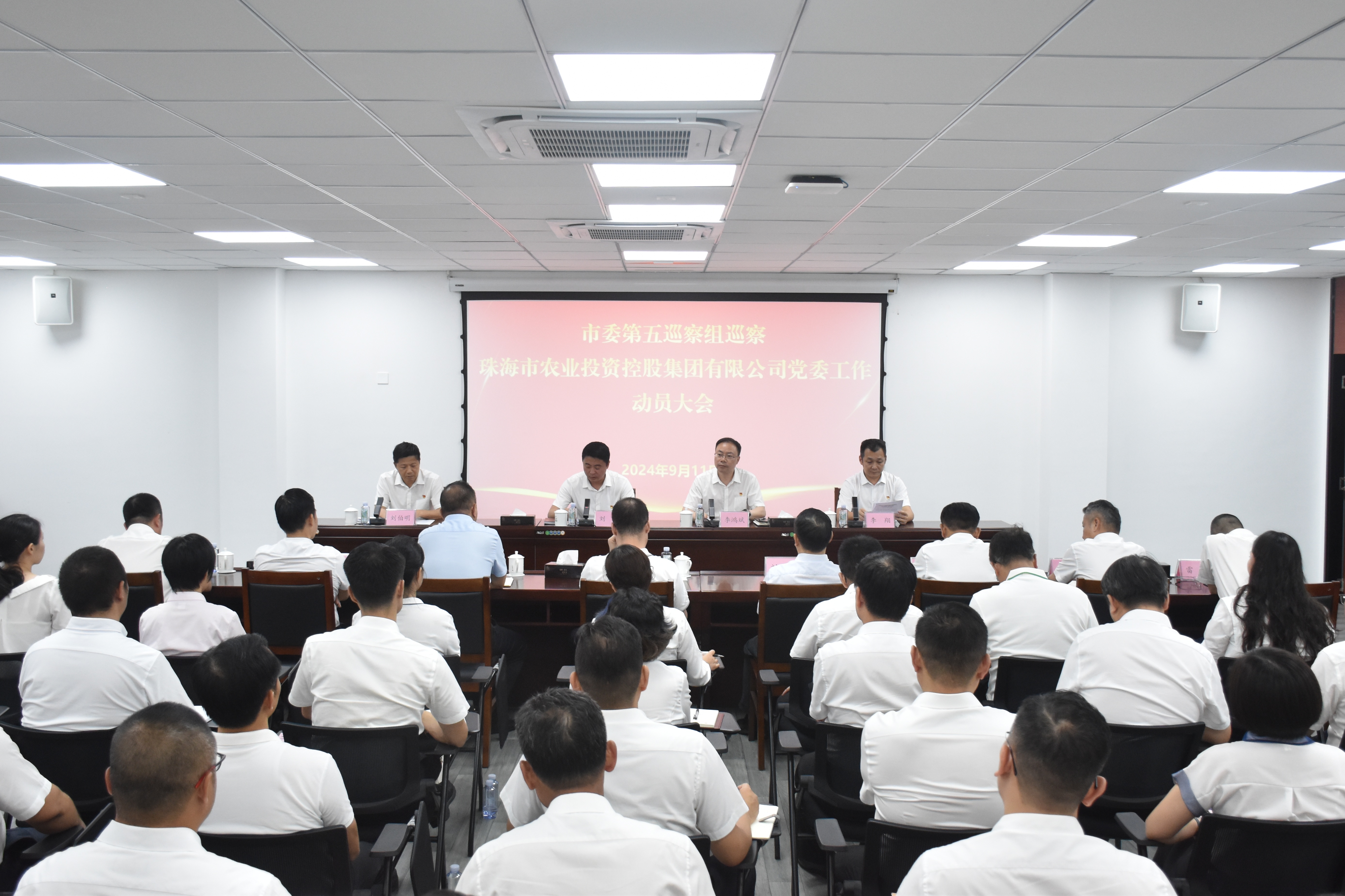 根据市委巡察工作统一部署,2024年9月11日,市委第五巡察组巡察完美(中国)体育官方网站(以下简称“农控集团”)党委工作动员会召开。会前,市委第五巡察组组长刘震主持召开与农控集团领导班子的见面沟通会,通报了巡察有关工作安排。动员会上,刘震作了动员讲话,对做好巡察工作提出要求。农控集团党委书记、董事长李鸿斌主持会议并作表态发言。